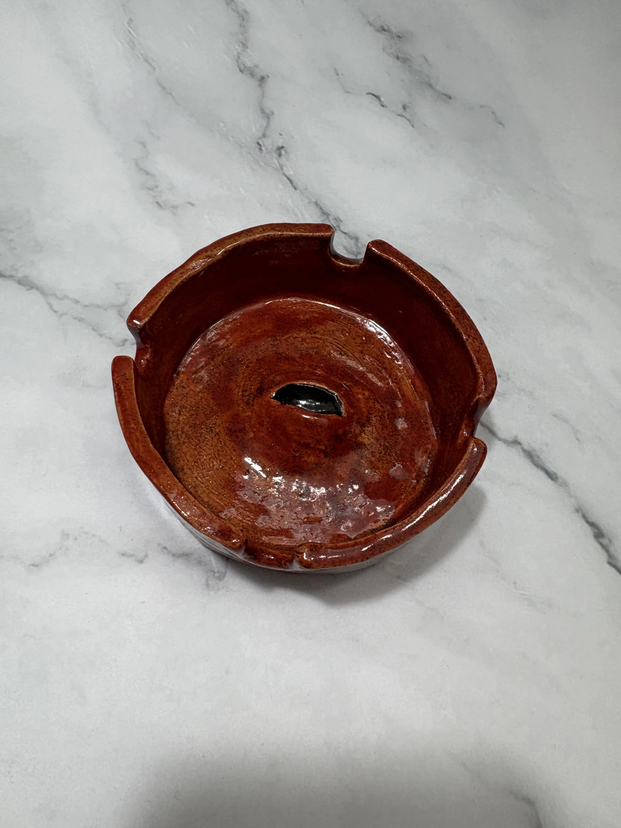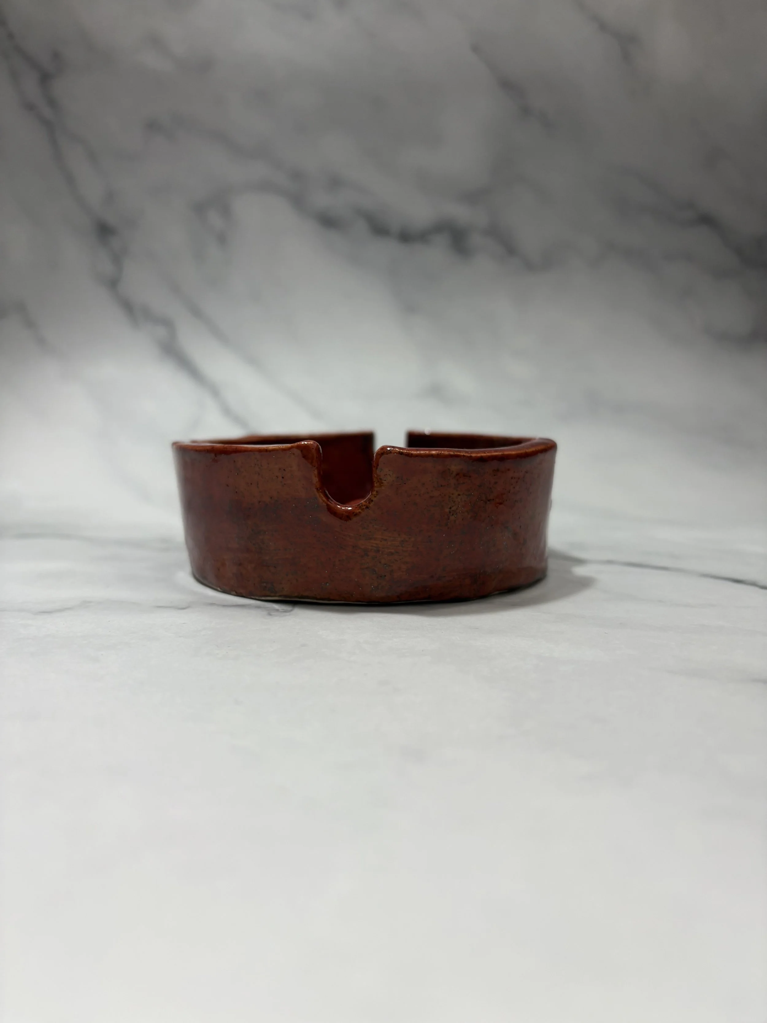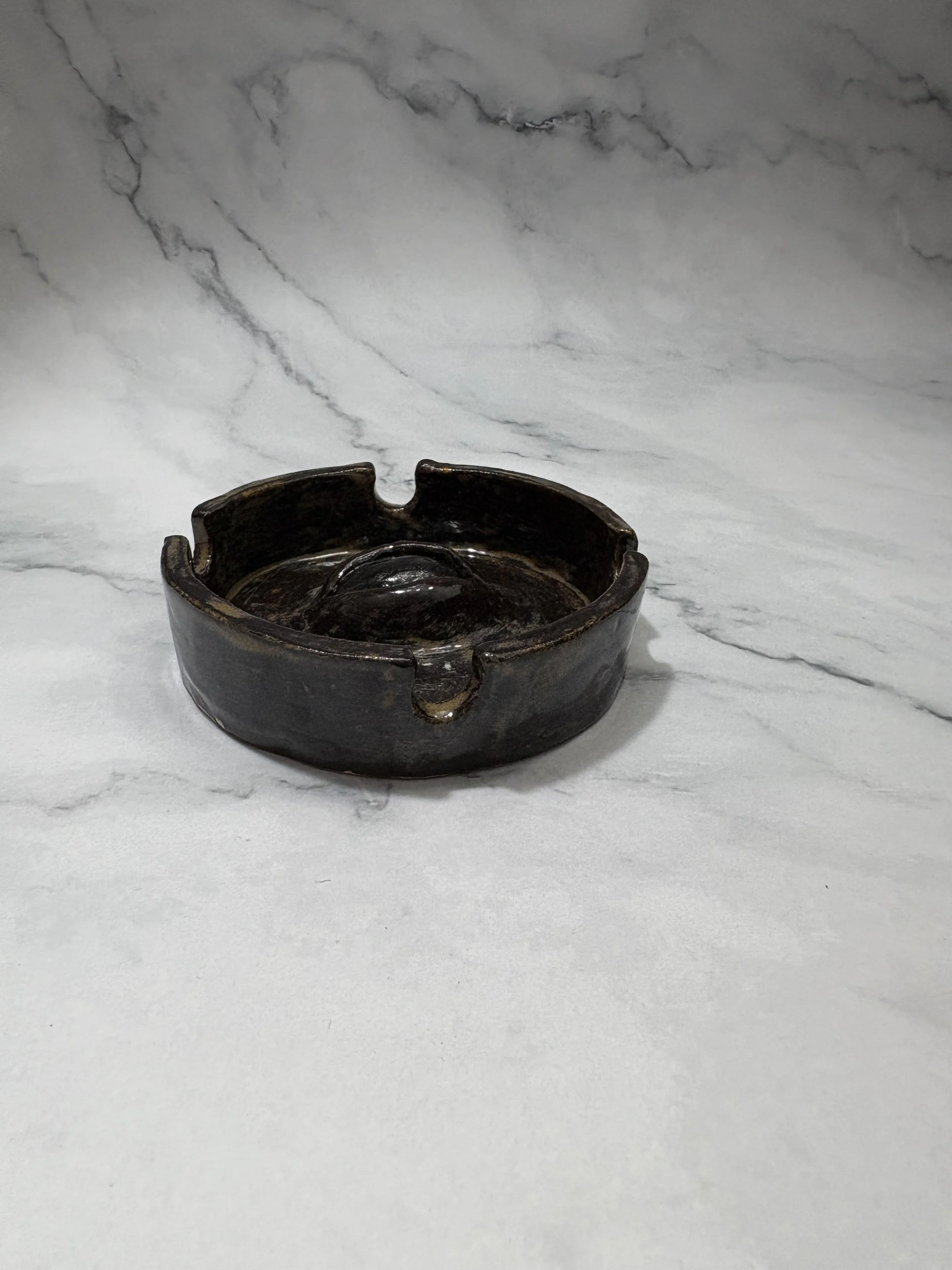 The rich green base mimics the vibrant hues of a lush forest while the brownish spots playfully resemble the organic patterns found on tree bark. Each ashtray is hand-crafted, ensuring that no two pieces are the same—just like a walk in the woods, you'll discover something unique each time. Its sturdy design is perfect for everyday use, while its artistic flair adds a pop of color and personality to your space.